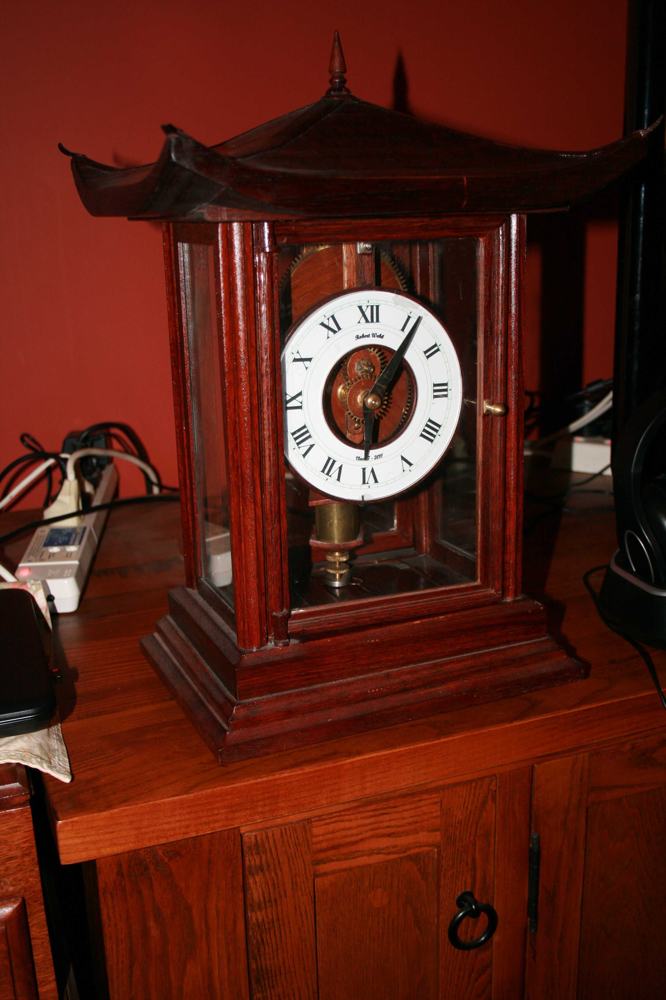 I am a woodturner which means that I try to avoid cabinet making if I can. However on this occasion I decided to try my hand at an enclosed glass case with an oriental flavour. The case has 3mm glass with the doors front and back swung on hinges I designed myself.