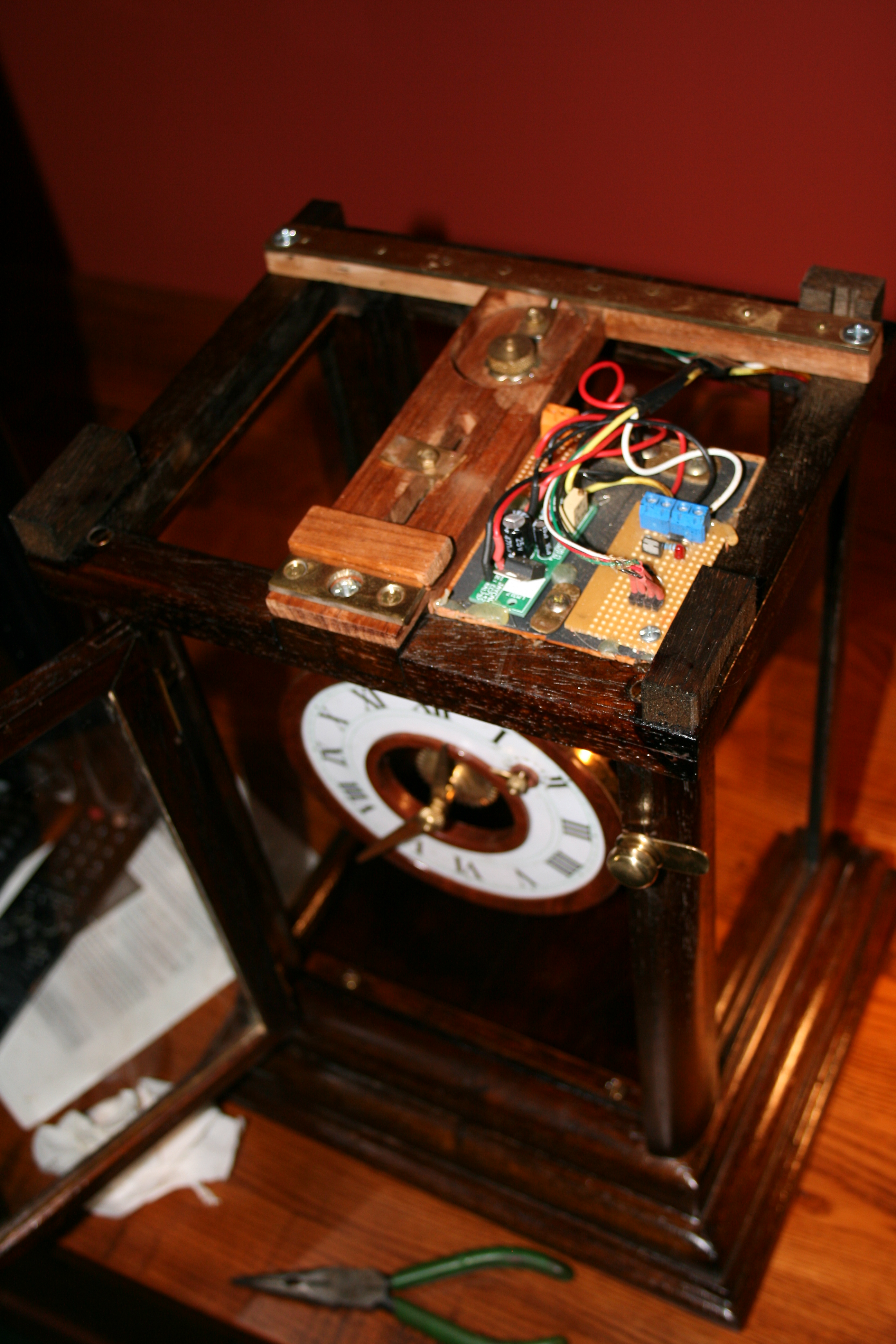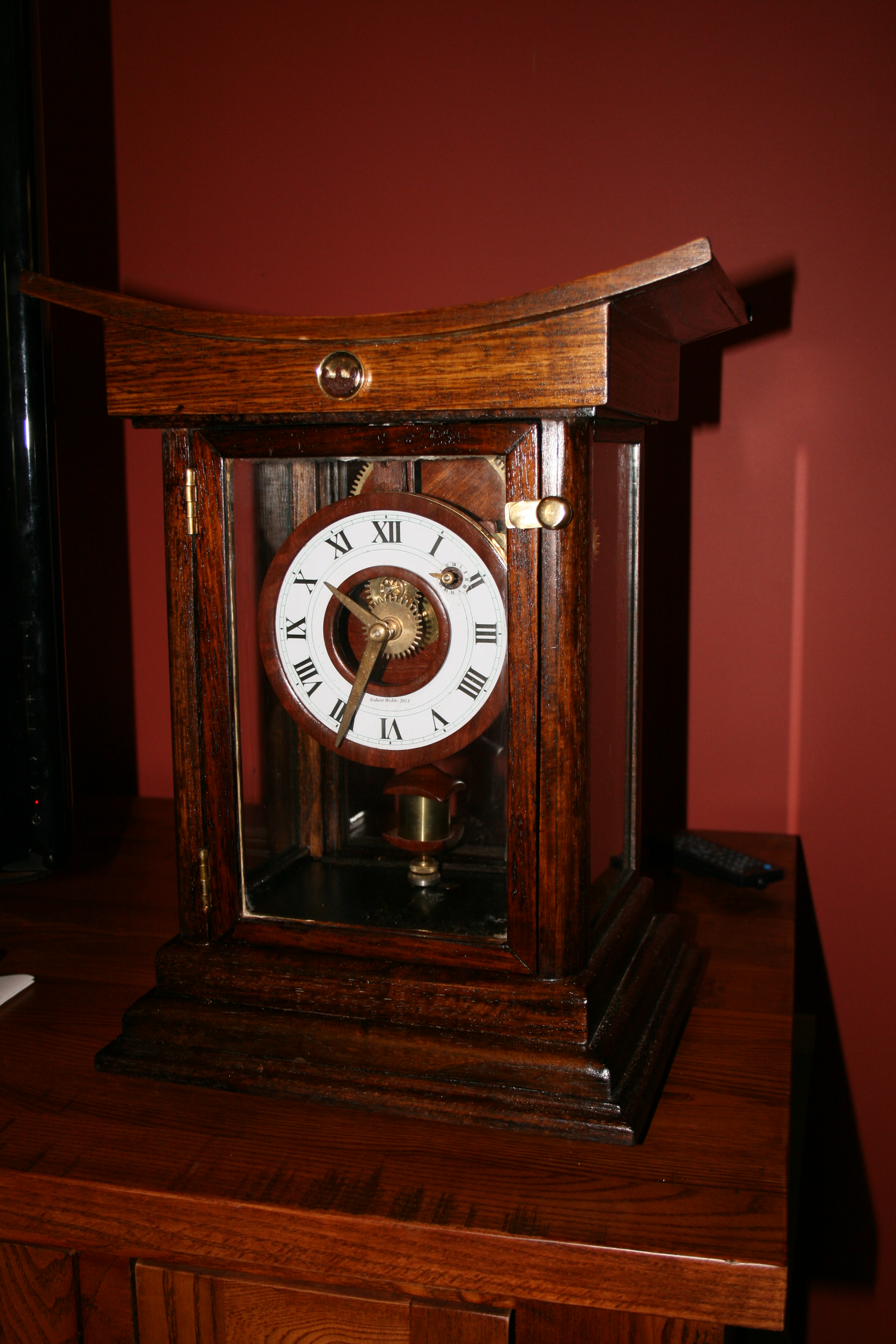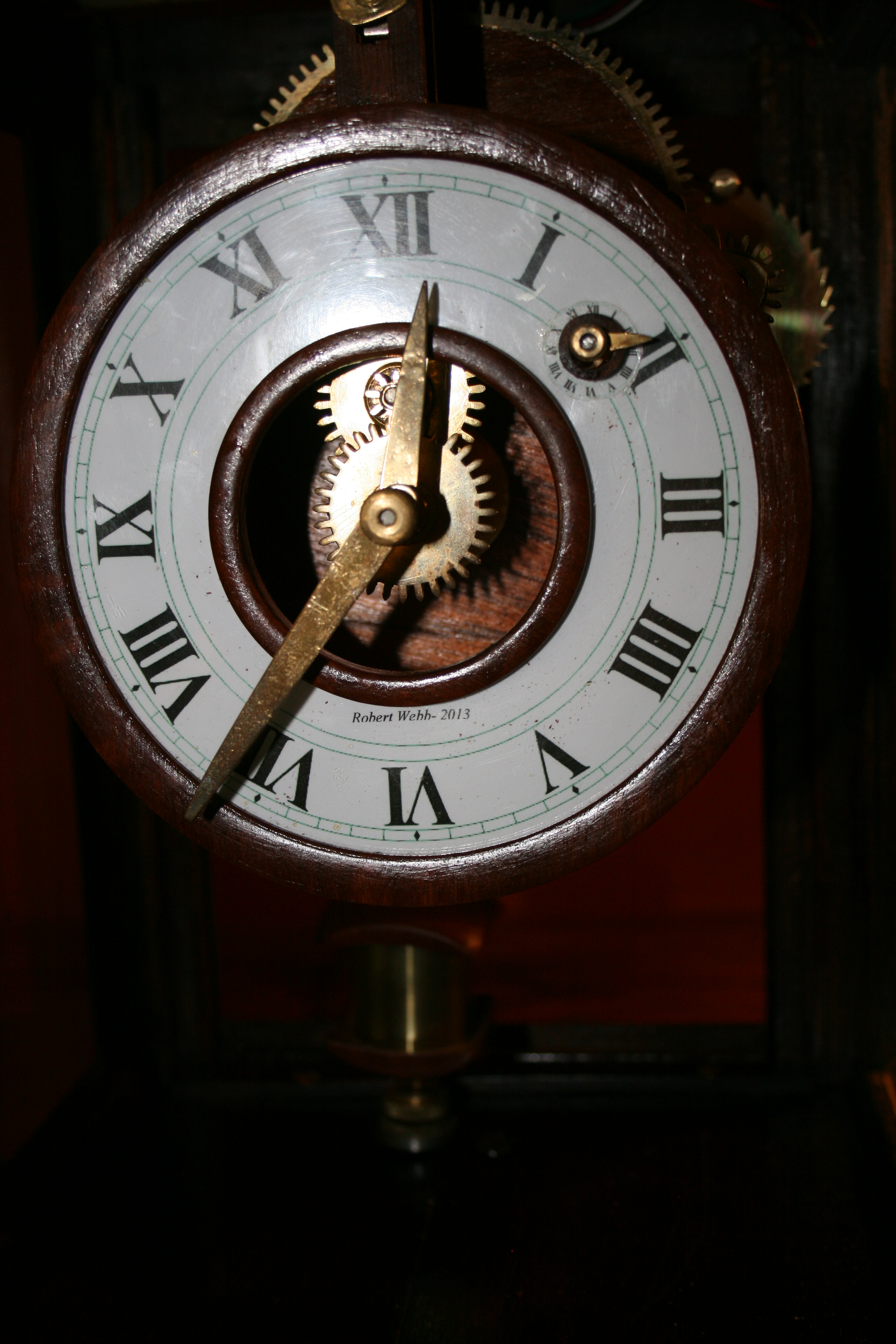 This is clock number 8. Once again I have opted use an enclosed glass case but on this occasion I used traditional hinges and a home designed door catch. This particular clock was featured in the Australian Woodworker and the full article appears elsewhere in the webpage.